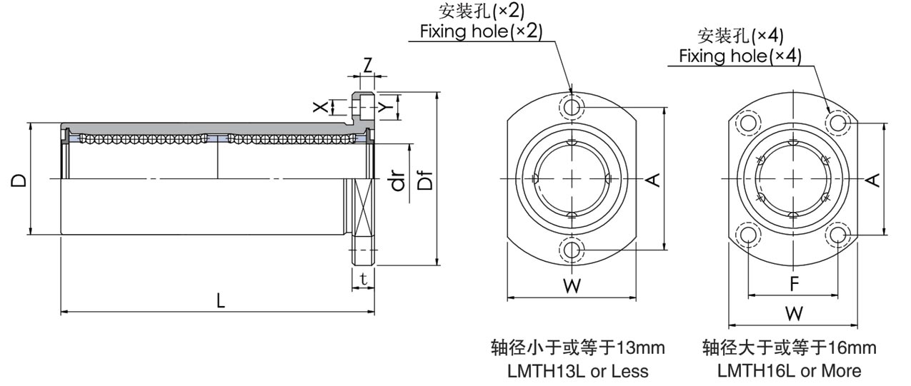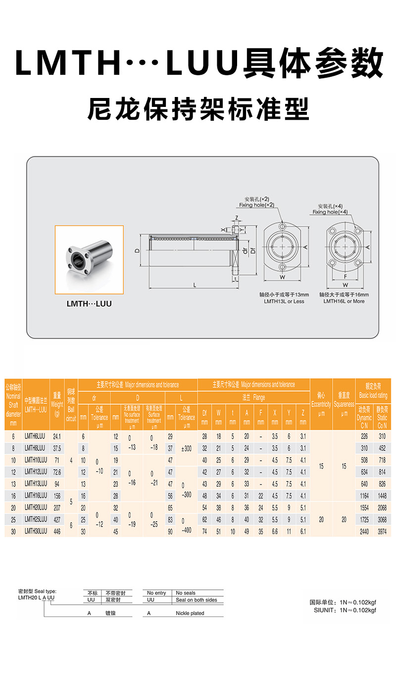 LMTH···LUU尼龍保持架,該類型尺寸是公制的,廣泛應用于亞洲和其它國家。