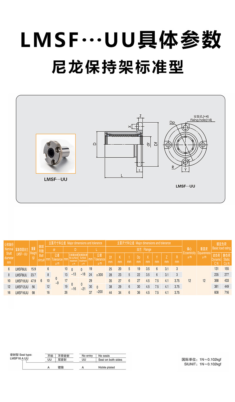 MYT美亞特,LMSF···UU系列直線軸承,尼龍保持架,該類型尺寸是公制的,廣泛應用于亞洲和其它國家。