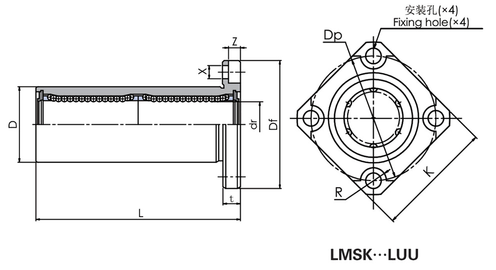 LMSK···LUU尼龍保持架,該類型尺寸是公制的,廣泛應用于亞洲和其它國家。