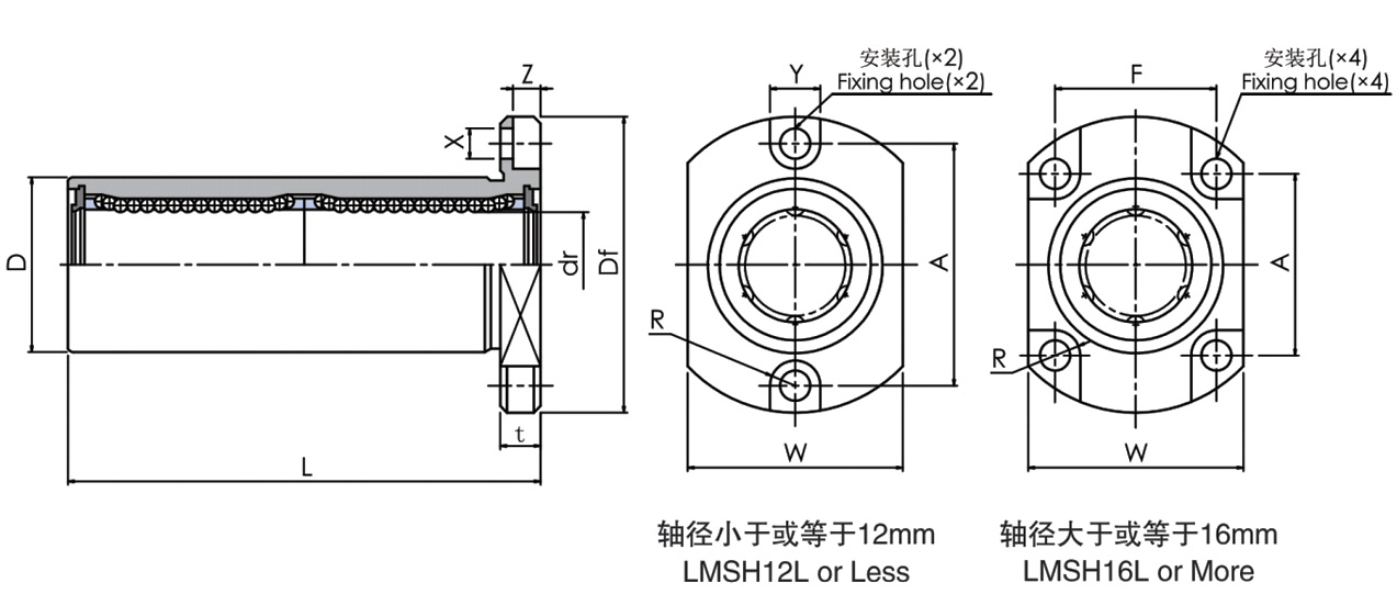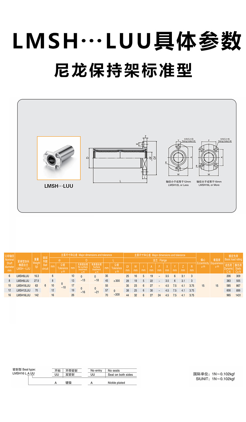 LMSH···LUU尼龍保持架,該類型尺寸是公制的,廣泛應用于亞洲和其它國家。