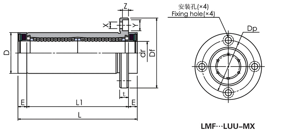 帶潤滑裝置 加長圓法蘭 LMF···LUU-MX