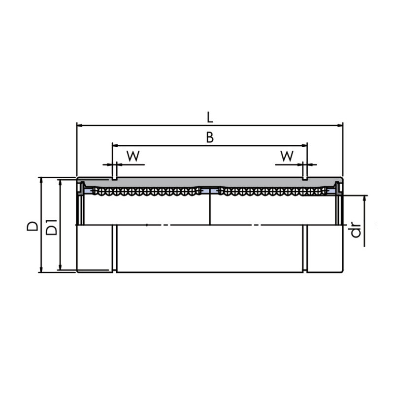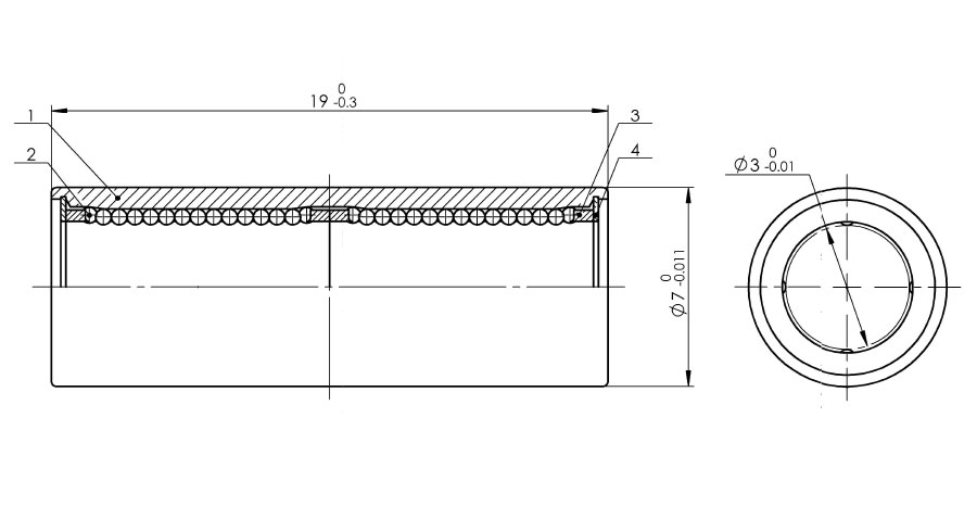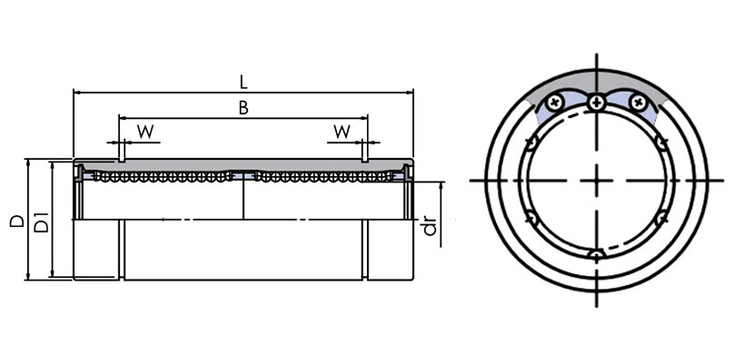 MYT美亞特直線軸承由外圈、鋼球、保持架和擋圈組成。保持架能將鋼球約束在循環軌道中,擋圈將保持架固定在外圈中。這些零件組裝在一起便使軸承具有最佳的功能。