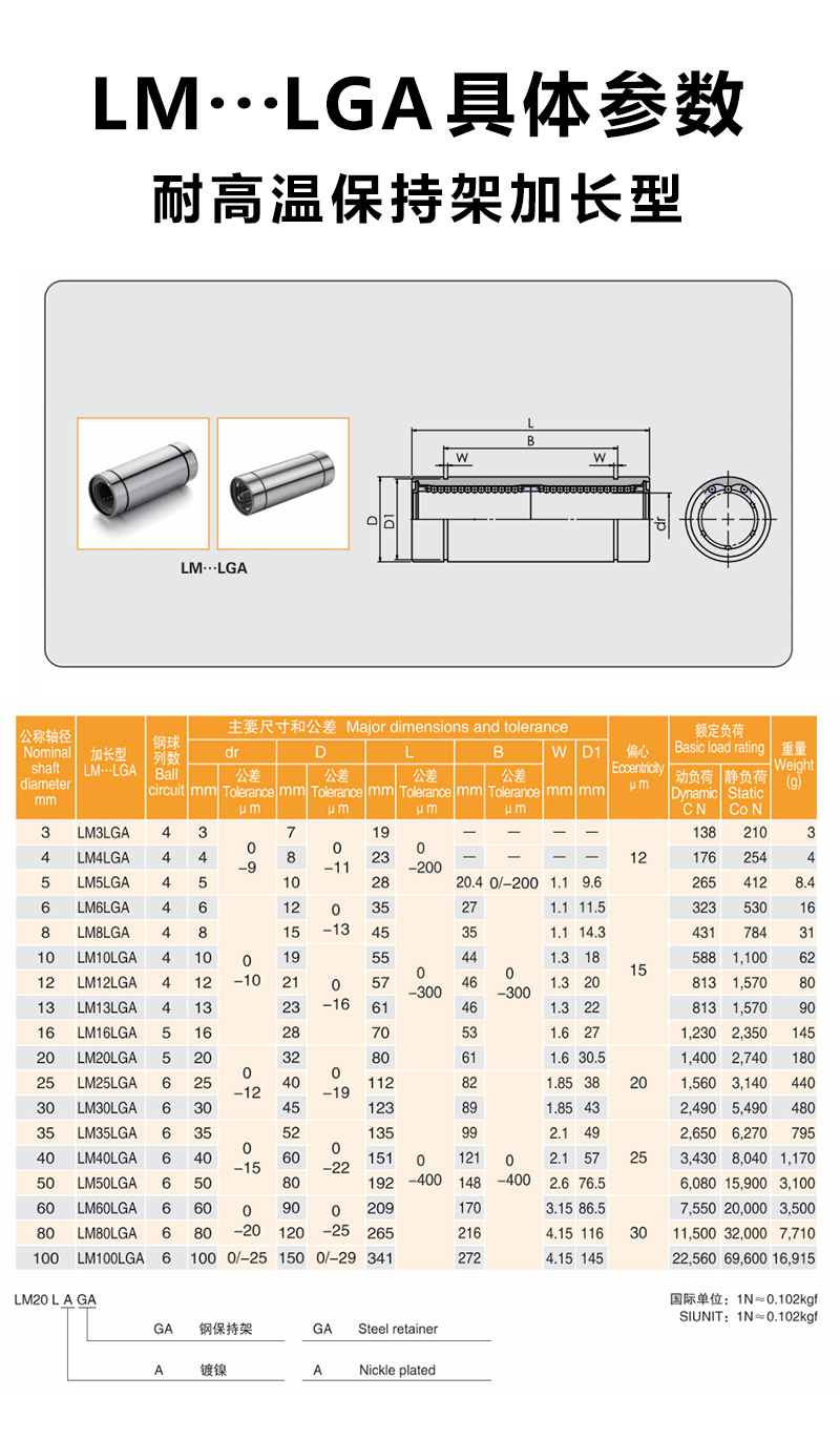 LM···LGA耐高溫保持架,該類型尺寸是公制的,廣泛應用于亞洲和其它國家。所有型號均可根據客戶要求做鍍鎳處理,有防銹作用。