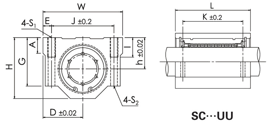 內裝軸承 LM6UU 基本額定動負荷(CN) 206 基本額定靜負荷(CoN) 265