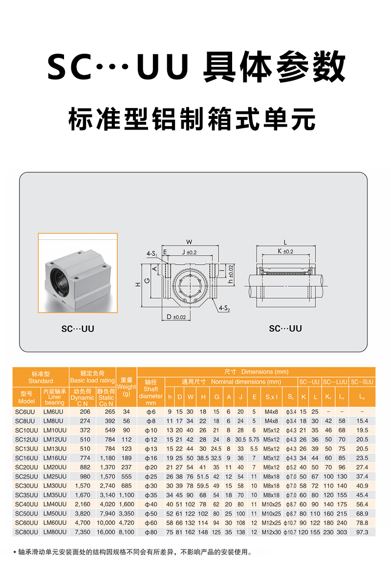 外殼材質 鋁合金 滾珠材質 軸承鋼Gcr15 保持器材質 尼龍PA66