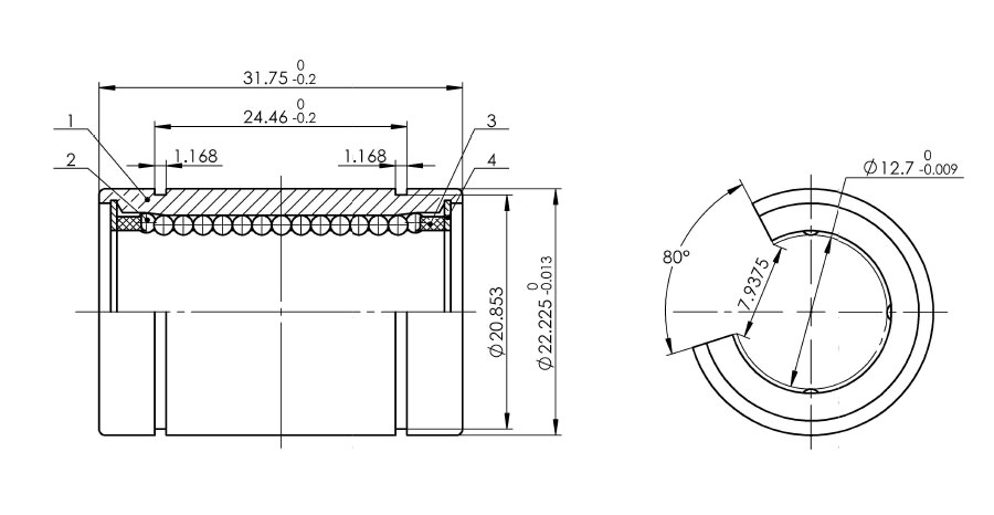 內徑dr公差(Inch/μm) 0/-.00040 0/-9 外徑D(Inch/mm) .8750 22.225 外徑D公差(Inch/μm) 0/-.00050 0/-13