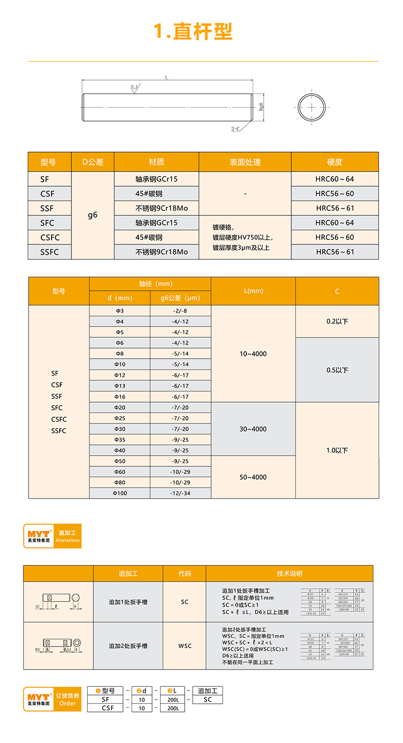 MYT美亞特 實心導向軸 電鍍直線光軸 直桿型