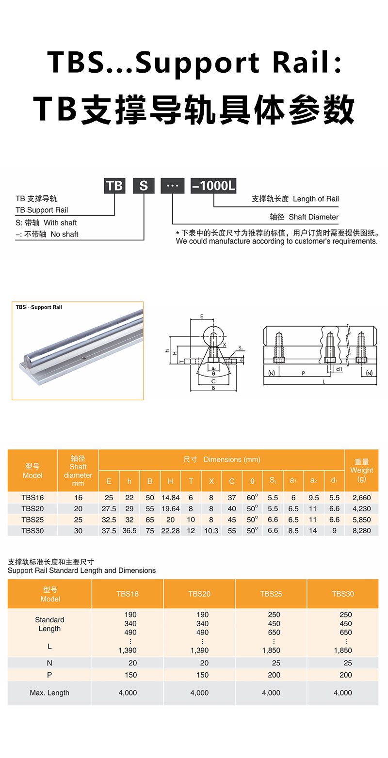 MYT美亞特 直線導軌 光軸鋁托支撐圓導軌 TBS 配套TBR滑塊使用預計到貨日: 2026.01.02 |