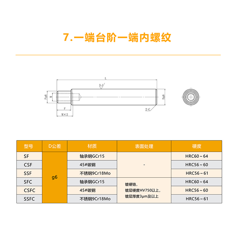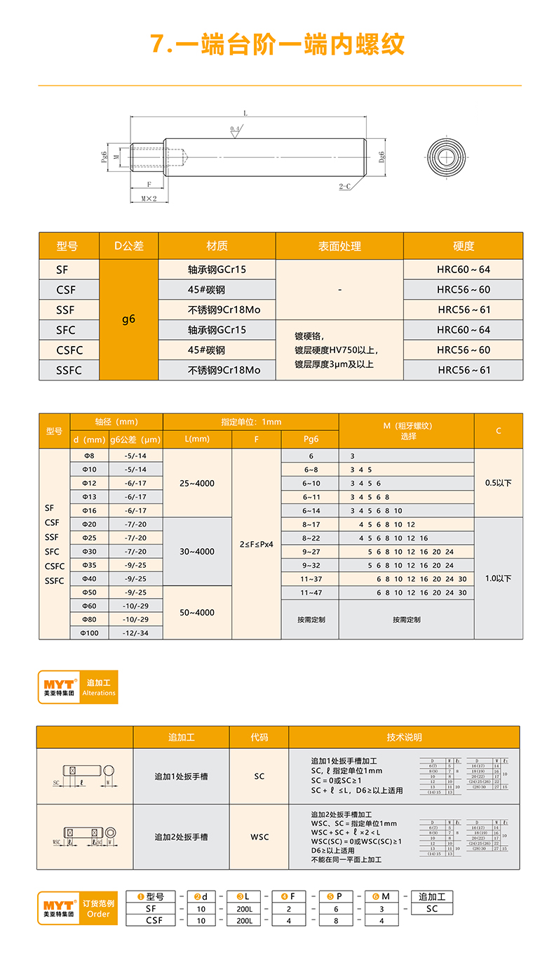 MYT美亞特 實心導向軸 電鍍直線光軸 一端臺階一端內螺紋型