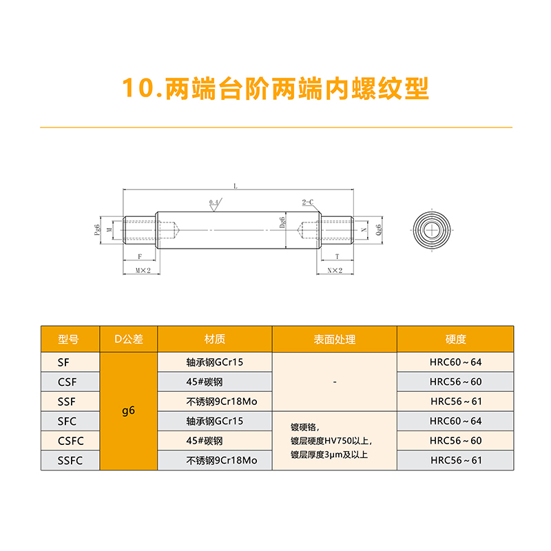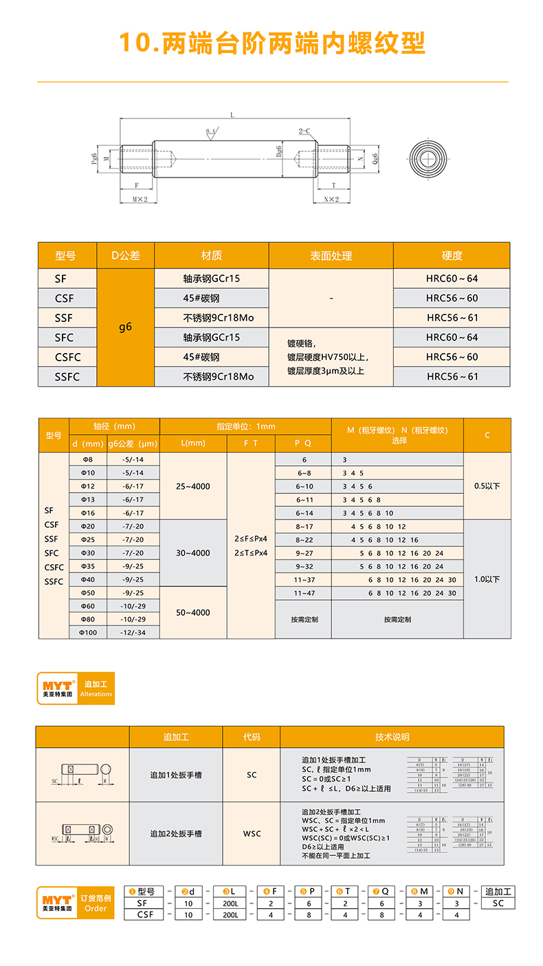 MYT美亞特 實心導向軸 電鍍直線光軸 兩端臺階兩端內螺紋型
