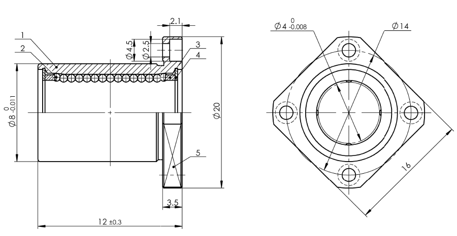 長度L公差(μm) ±300 法蘭Df(mm) 20 法蘭K(mm) 16