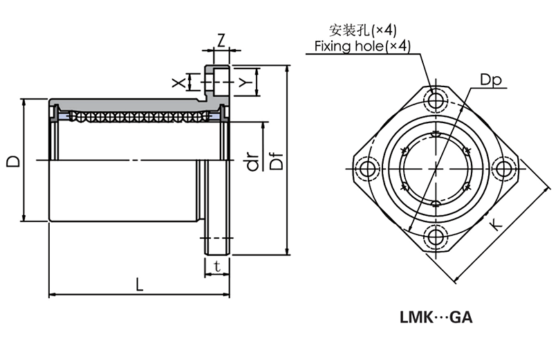 ●MYT美亞特法蘭型直線軸承外圓上有一個垂直的安裝平臺,故安裝時不需軸承座,從而大大地降低了成本。