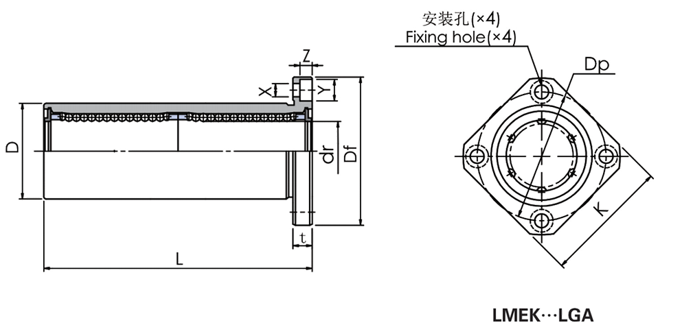 MYT鋼保直線軸承 歐標 加長方法蘭 LMEK···LGA