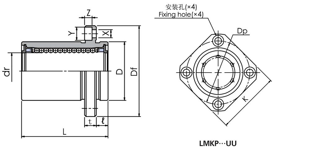MYT 導向方法蘭直線軸承 LMKP···UU