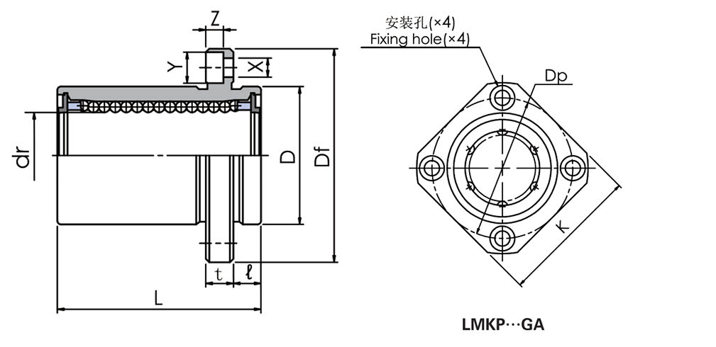 MYT鋼保直線軸承 導向方法蘭 LMKP···GA